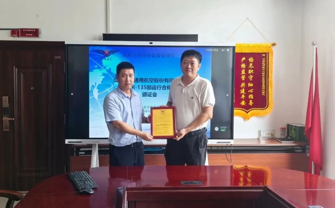8月4日上午,民航山西安全監(jiān)督管理局在太原舉行了成功通航CCAR-135部《航空運(yùn)營(yíng)人運(yùn)行合格證》頒證儀式。民航山西安全監(jiān)督管理局飛標(biāo)處處長(zhǎng)李瑋、維修處主任監(jiān)察員白乃冰和成功通航總經(jīng)理王歡以及公司參與審定工作的相關(guān)成員參加了儀式。